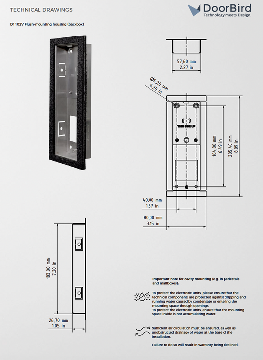 D2101KV/D2102FV FINGERPRINT 50/D2102FV EKEY FLUSH-MOUNTING HOUSING (BACKBOX)