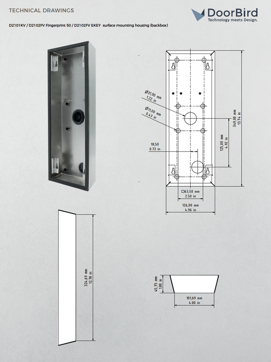 D2101KV/D2102FV Fingerprint 50/D2102FV EKEY/D2101FV EKEY sLine/D2102FV EKEY sLine Surface-mounting housing (Backbox)